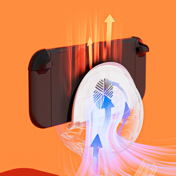 Стабильность и защита: Утяжелённое основание с противоскользящей подкладкой обеспечивает стабильность и ударопрочность, а встроенная активная система охлаждения снижает перегрев Switch 2.